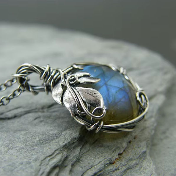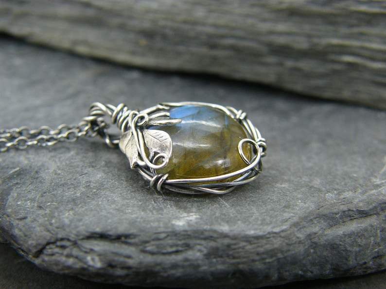 Collar de labradorita de plata colgante de labradorita azul joyería de plata esterlina collar de hojas colgante de hojas para mujer