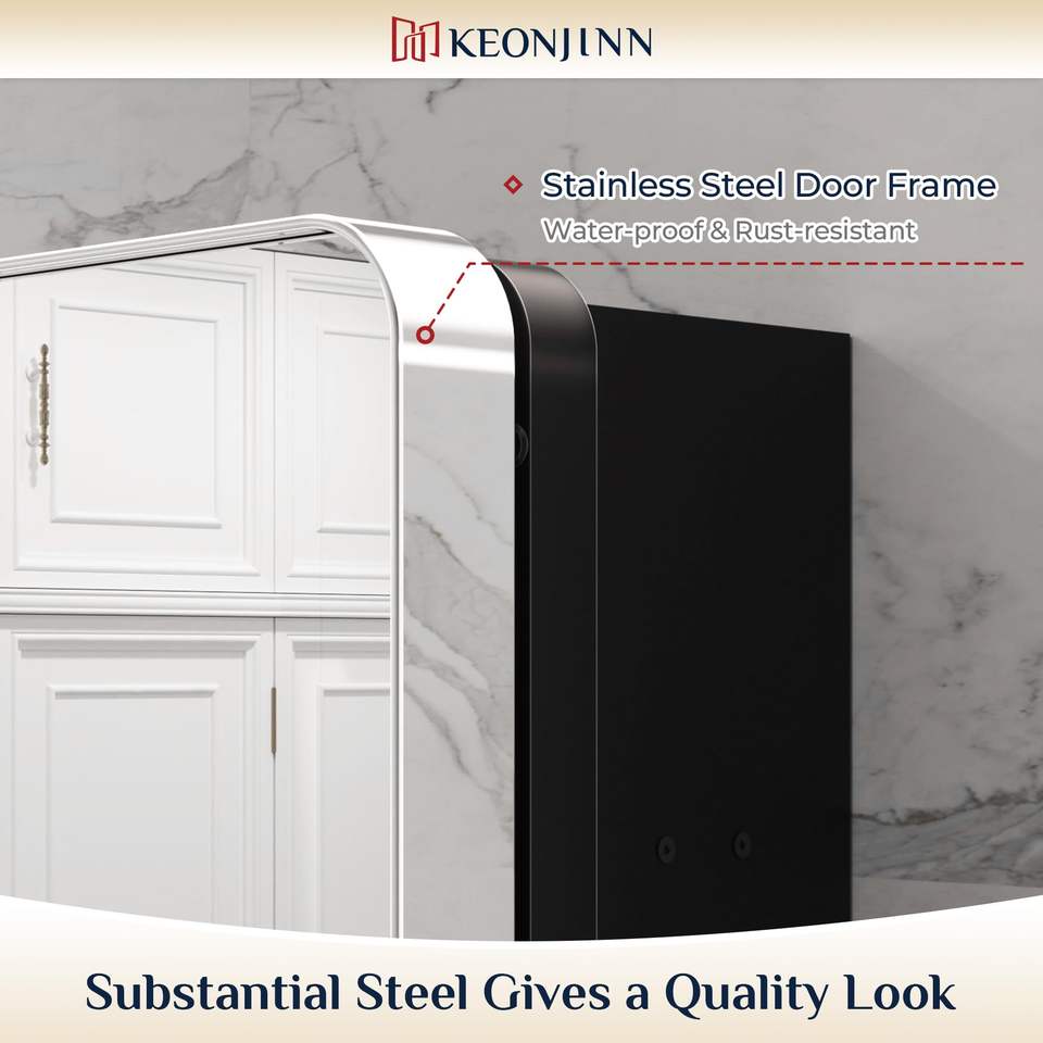 Marco de metal plateado Montado en la pared Gabinete de espejo de baño rectangular de doble puerta Diseño elegante con iluminación para hoteles