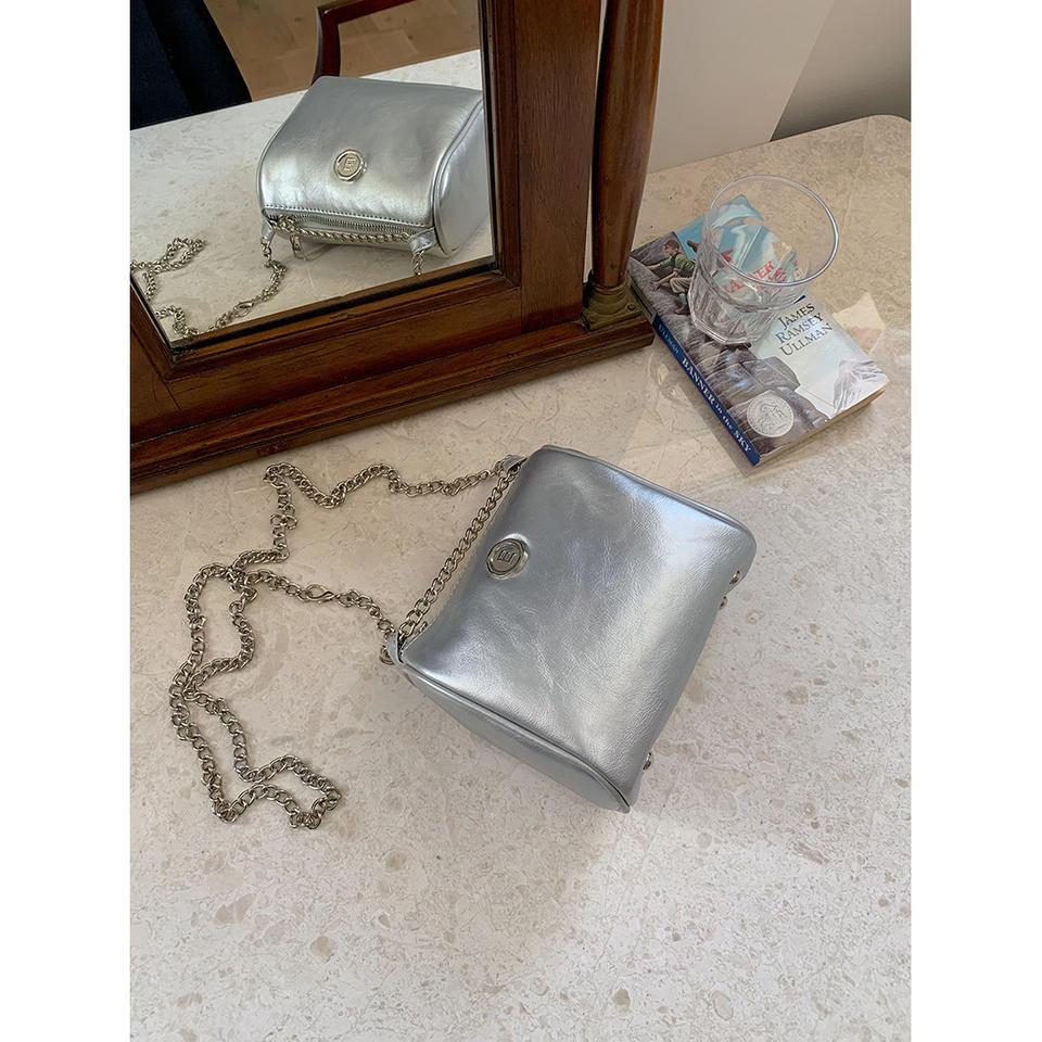 Bolso pequeño plateado con cadena, bolso de hombro tipo bandolera de 7 pulgadas con cremallera para mujer, uso diario, color blanco, negro y plateado