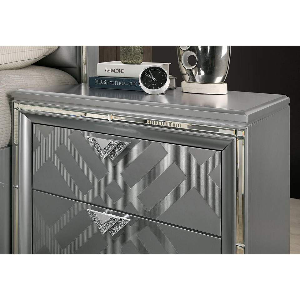 Embellecedor de espejo plateado DB 2 cajones mesita de noche muebles modernos para el hogar para dormitorio o sala de estar para uso en apartamentos