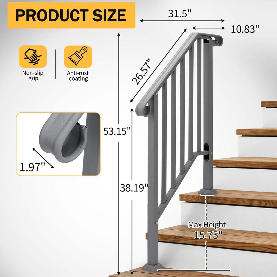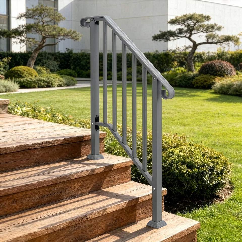 Barandilla de Hierro de 2 Peldaños para Exteriores, Plateada, Piezas de Escalera de Primera Calidad para Uso en Exteriores