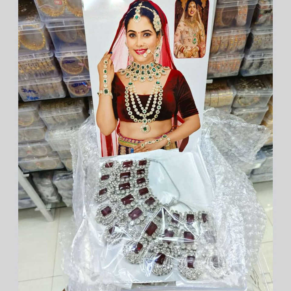 Conjunto de joyería fina chapada en plata con piedra de cristal para novias