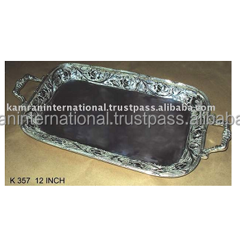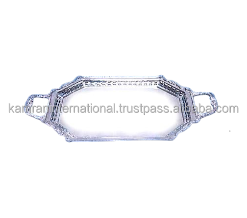 Bandeja de servicio rectangular chapada en plata con asas para llevar comida y servicio de habitaciones