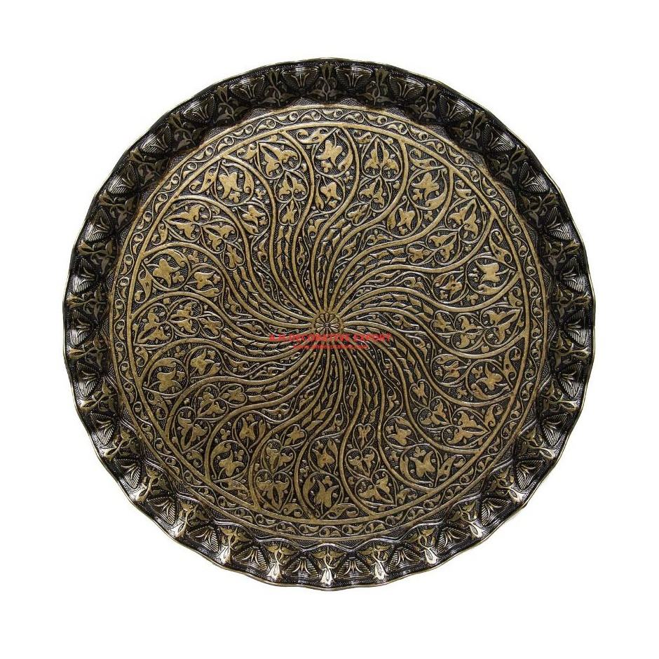 Bandeja Redonda Plateada de Metal con Diseño Marroquí Artesanal, Tamaño y Logotipo Personalizables, para Uso en el Hogar o Restaurantes, para Servir Dulces
