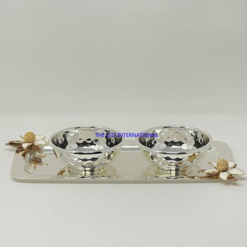 Rama de árbol chapada en plata, hoja, forma de pájaro volador, diseño conjunto, tres cuencos, cuenco decorativo de Metal de aluminio para el hogar