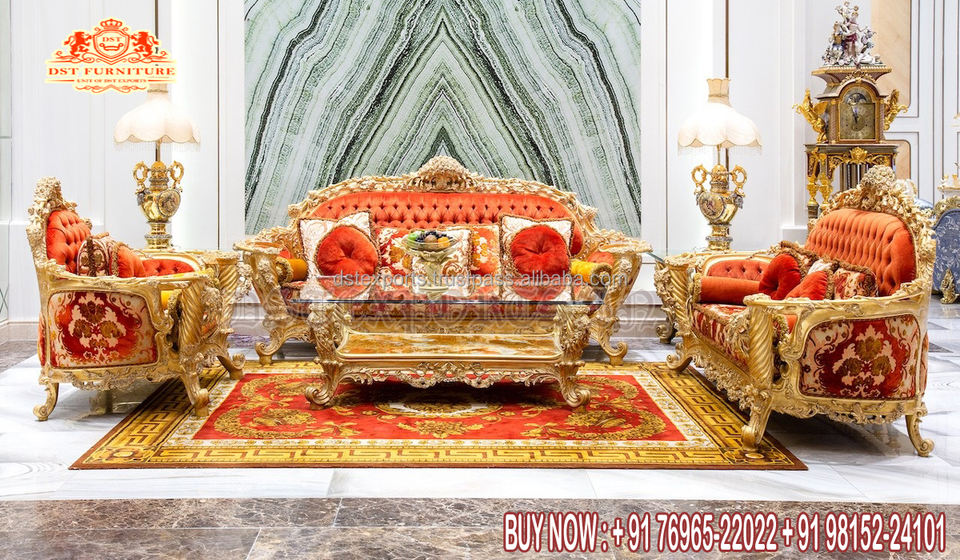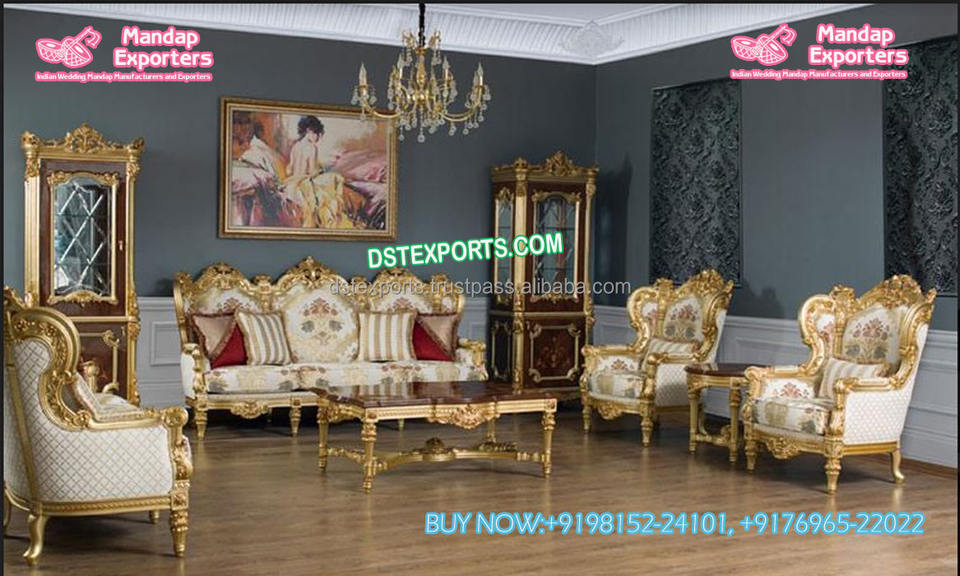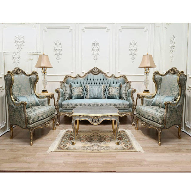 Juego de Sofás Victorianos Plateados Pulidos para el Hogar, Juego de Sofás Elegantes Tallados a Mano Italianos, Juego de Sofás con Incrustaciones de Plata para una Vida de Lujo en EE. UU.