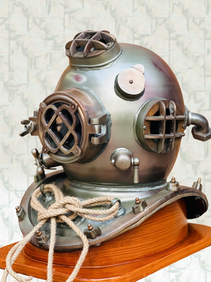 Casco de buceo Commando de doble tono con acabado plateado y morado, casco de buceo pesado estilo Boston, artículo de decoración náutica marina para el hogar.