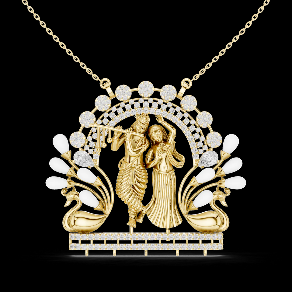 Colgante de Diamante Cultivado en Laboratorio con Diseño de Radha Krishna en Plata, Chapado en Oro de 14K/18K, Elegante Diseño de Inspiración Espiritual para Compromiso, Boda o Fiesta