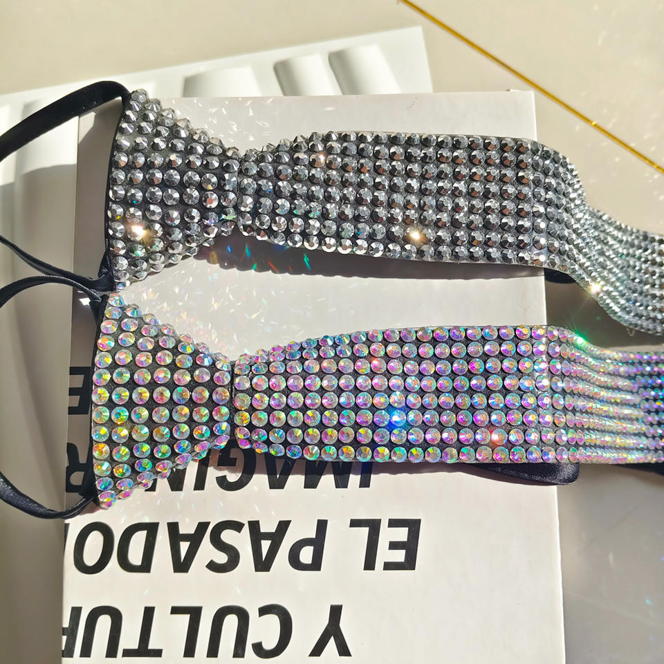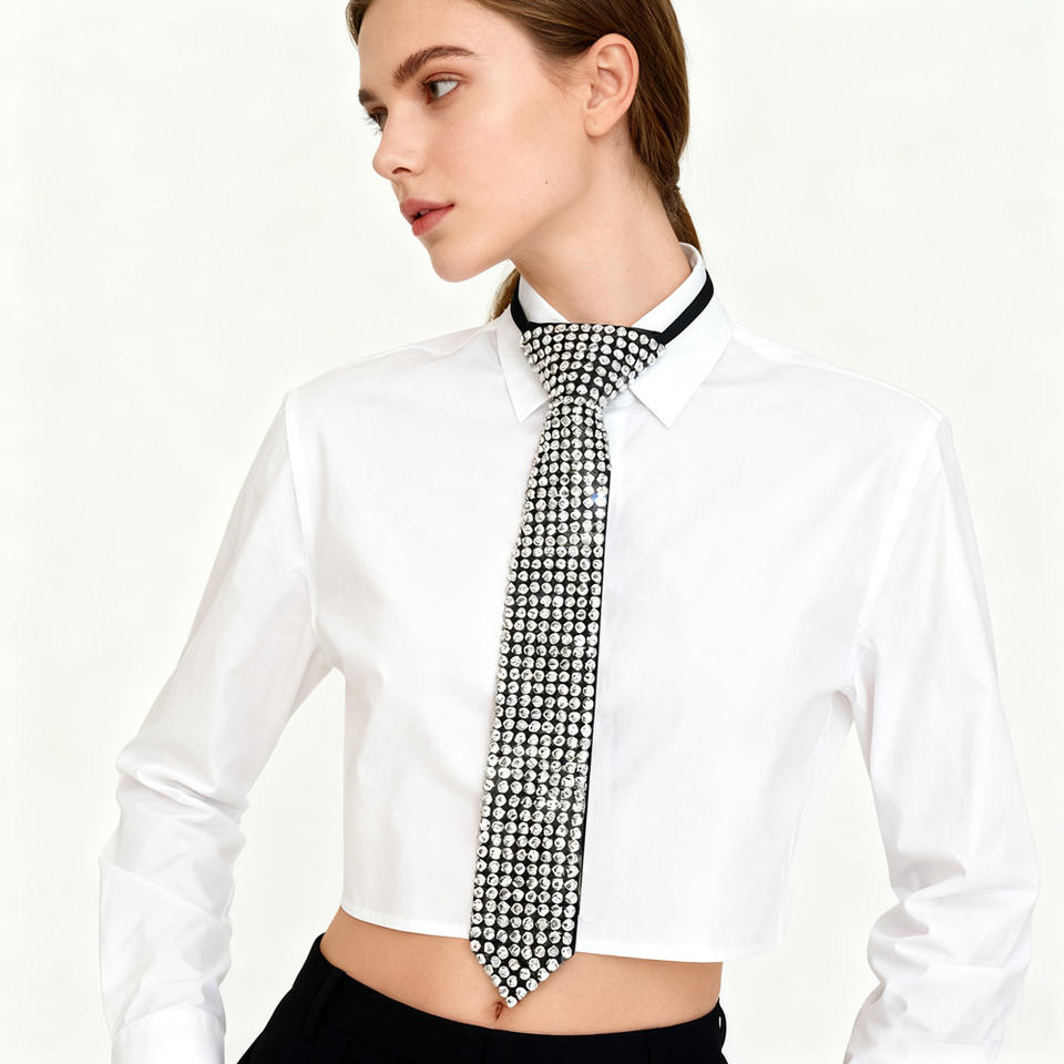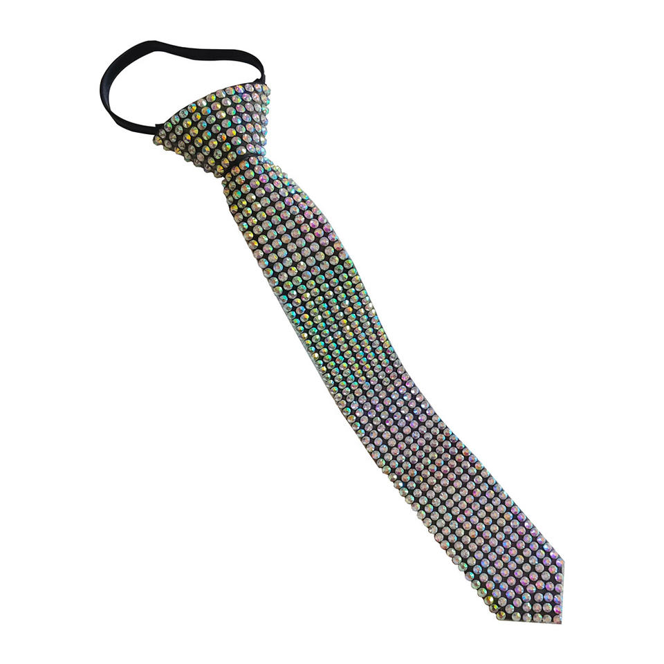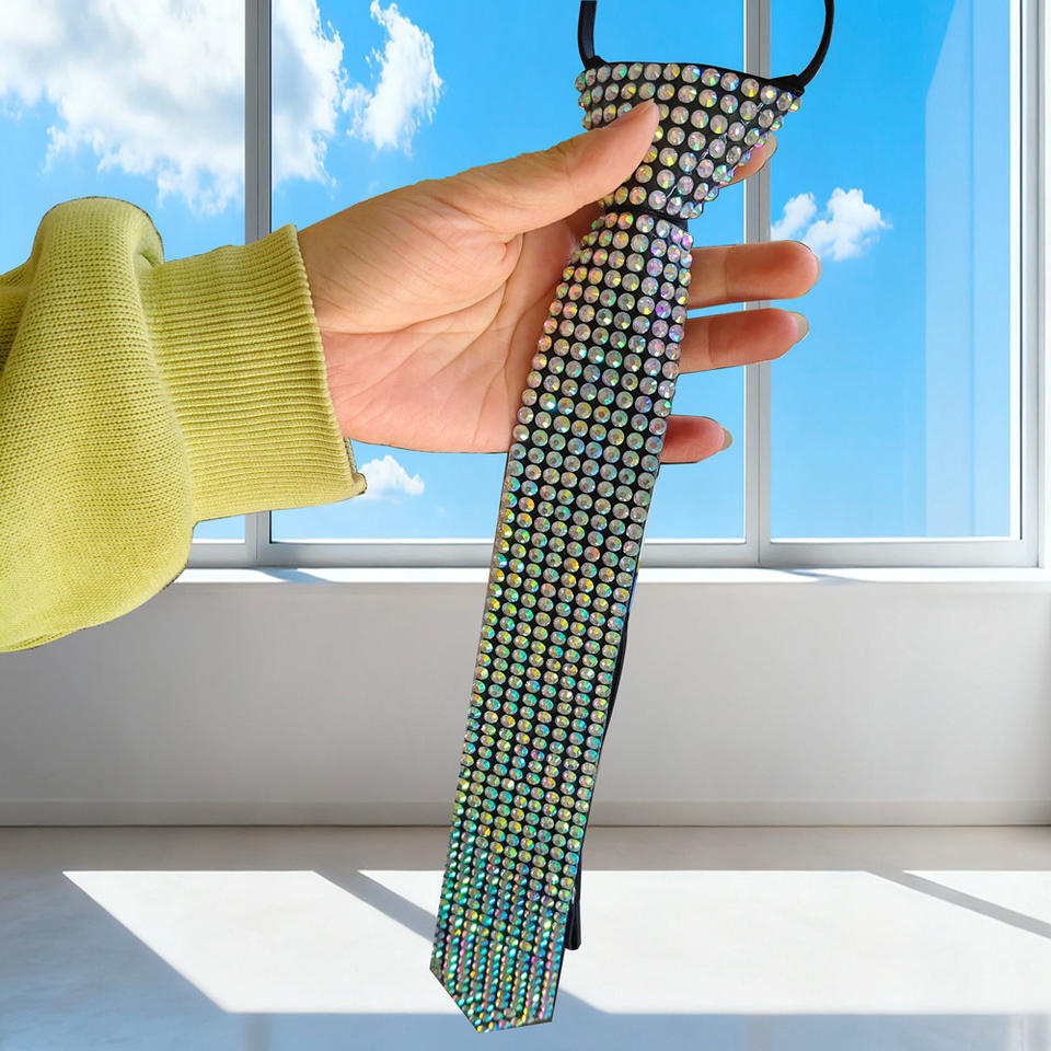 Corbata de Poliéster Monocromática con Pedrería Plateada, Accesorio Casual y Formal