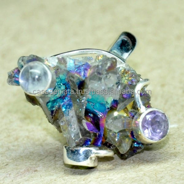 Anillo de plata, pirita y amatista, anillo hecho a mano de Plata de Ley 925, anillo contemporáneo, anillo de moda para aniversario de bodas