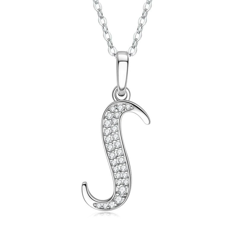 Collar con Colgante de Letra en Plata con Baño de Rodio y Cristal, Estilo Clásico Unisex para Uso Diario, Cadena de Eslabones
