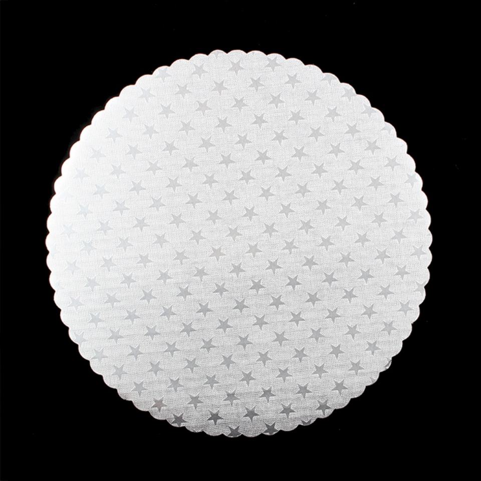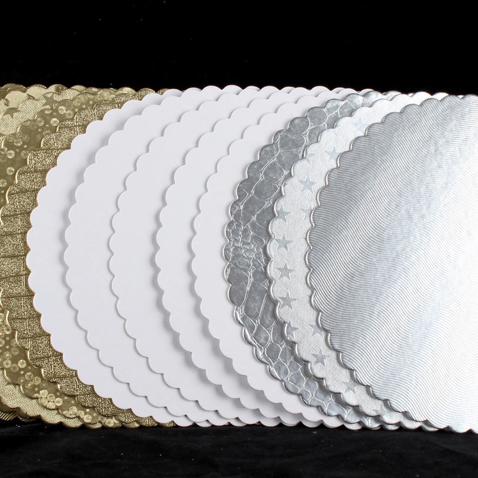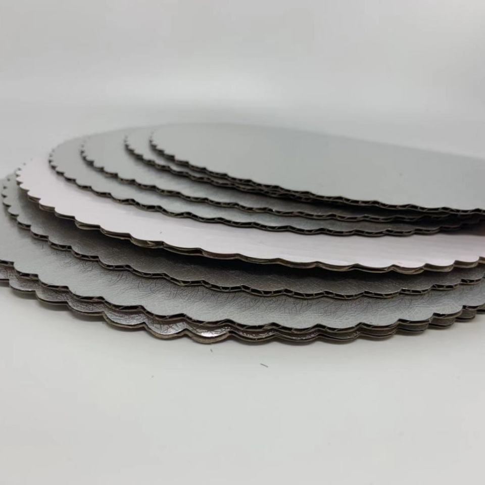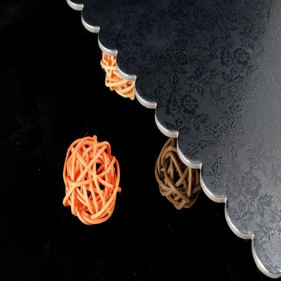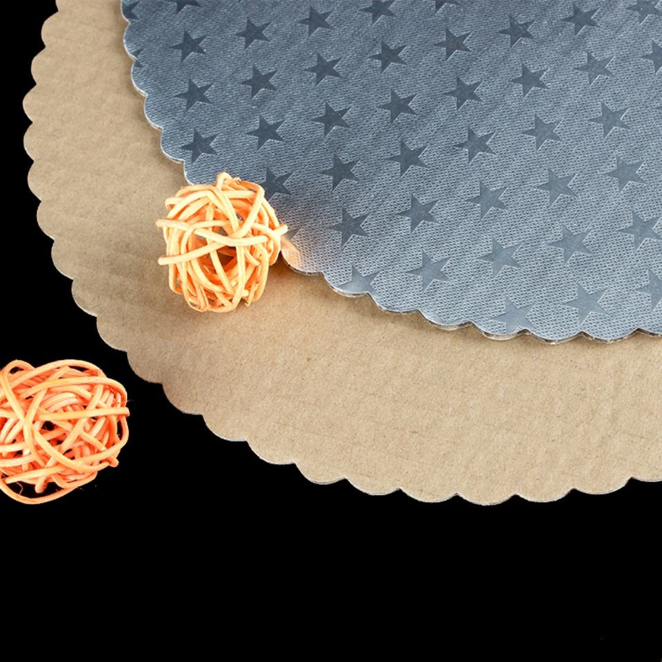 Base para Pastel Redonda con Borde Festoneado Plateado, Corrugada, Personalizada, con Laminado Mate, 6mm 12mm