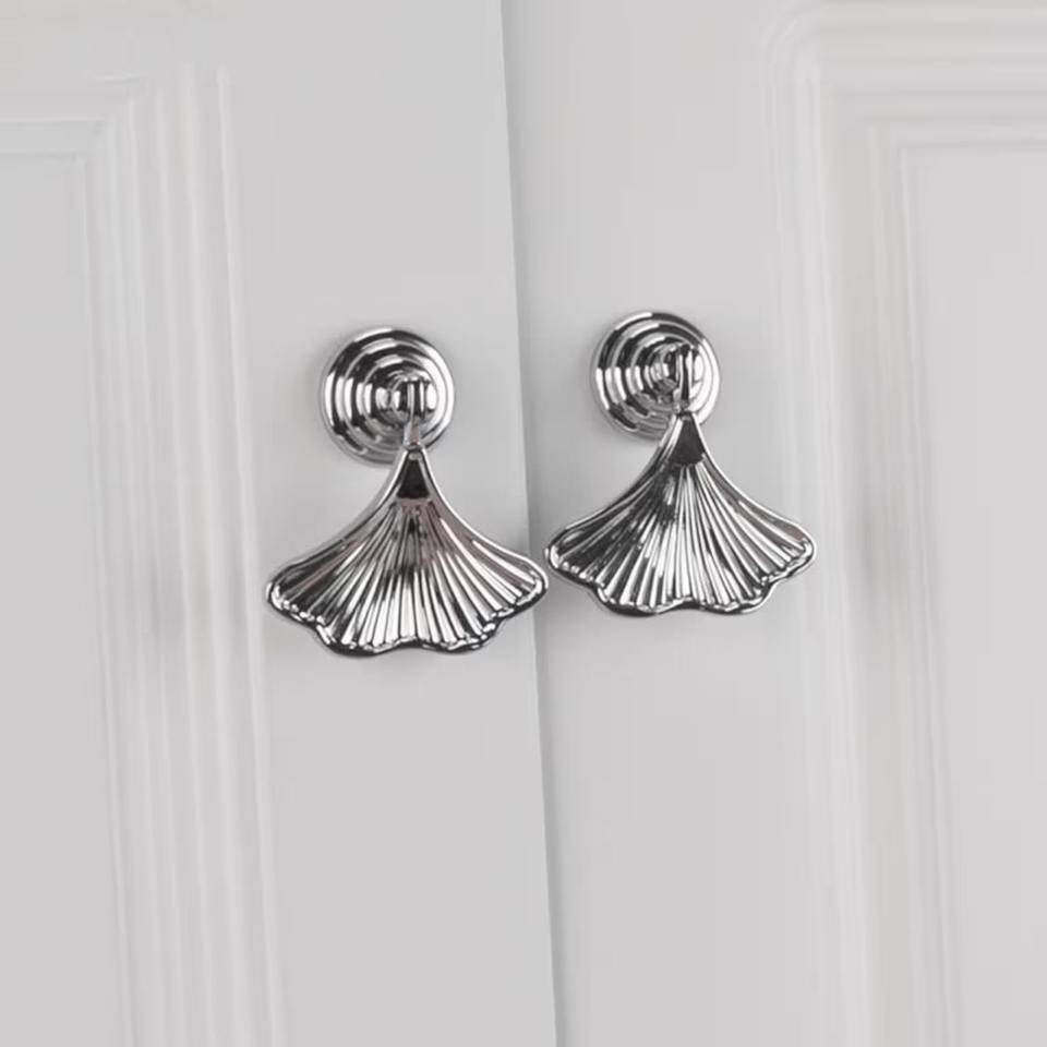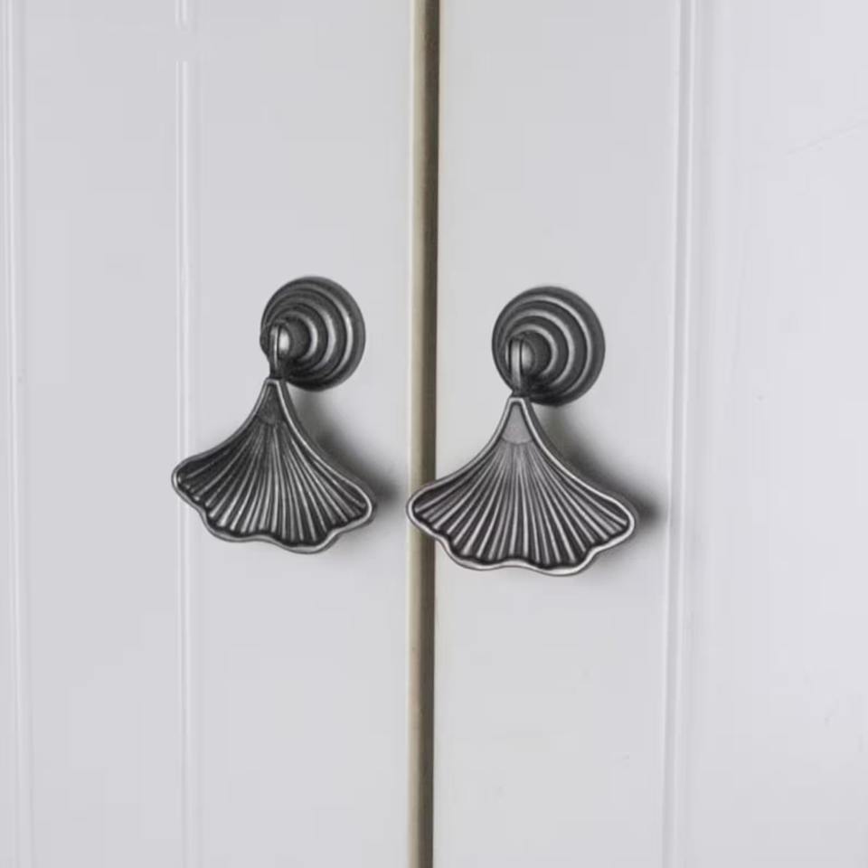Perilla de diseño de concha plateada para gabinetes, cajones y puertas, elegante manija decorativa para decoración del hogar con temática costera y uso en muebles