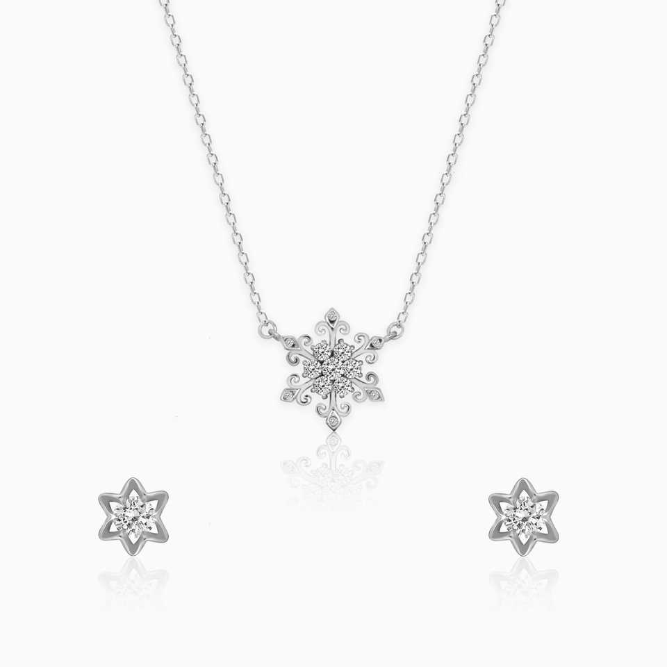 Conjunto de aretes de plata copo de nieve accesorio elegante y de moda