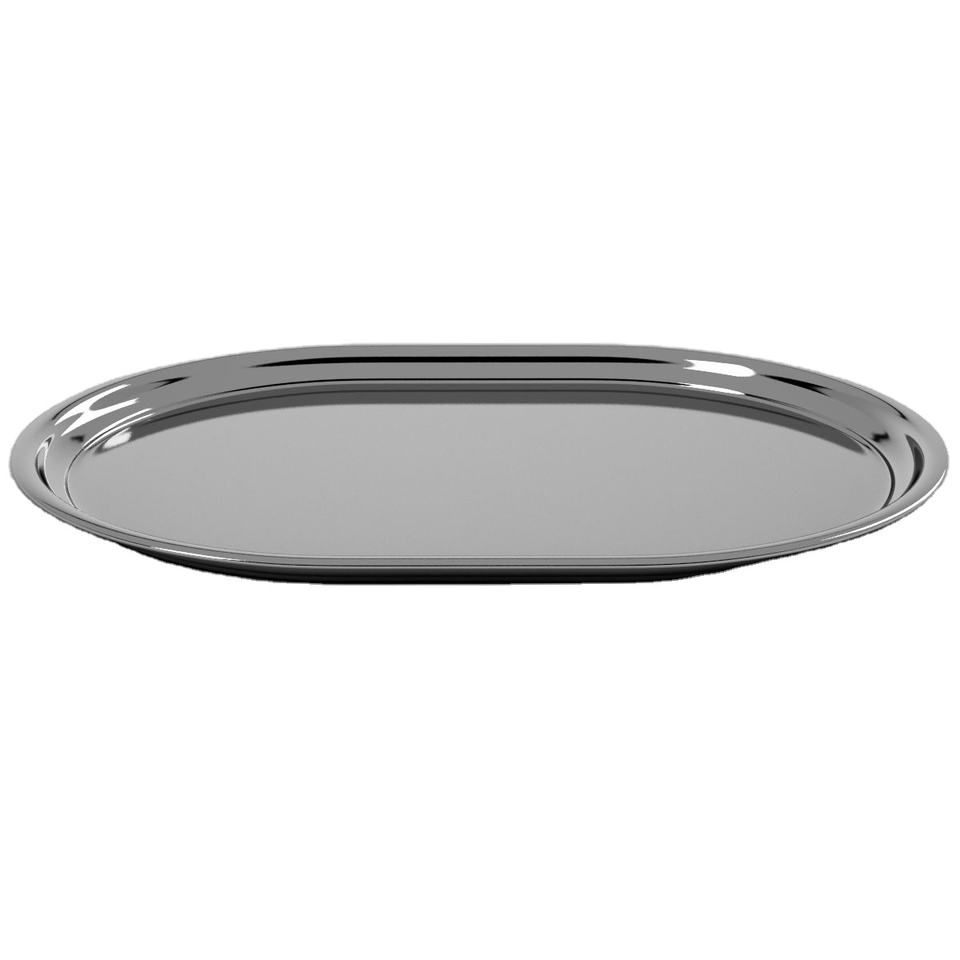 Bandeja plateada de acero inoxidable, plato de frotamiento decorativo de lujo, bandeja de diseño ovalado para servir con temática de frutas y asas para restaurante de Hotel