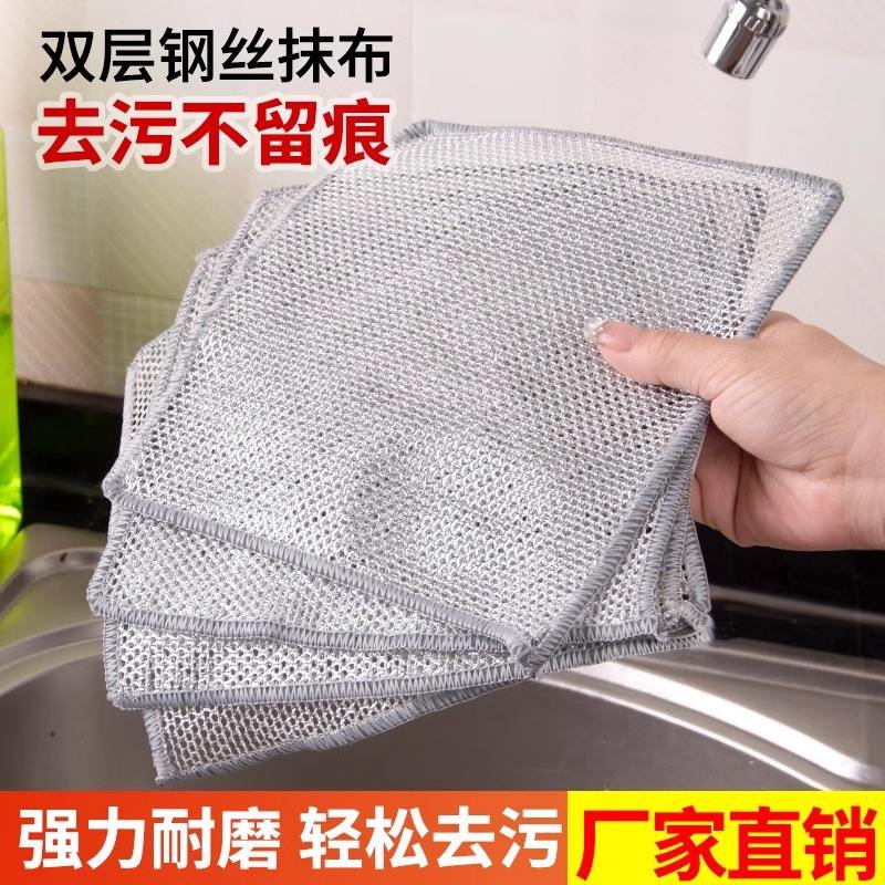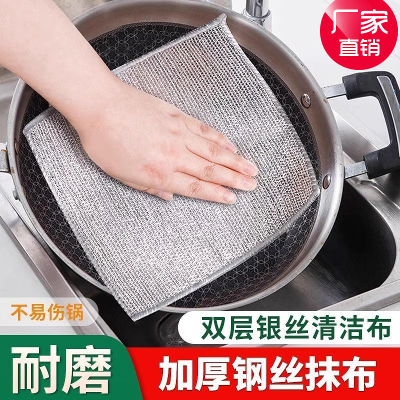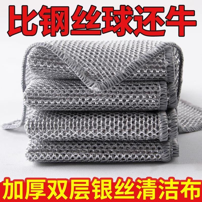 Paño de limpieza de hilo plateado de 95g, paño de cocina de doble cara con patrón de rejilla M, engrosado, para ollas y sartenes