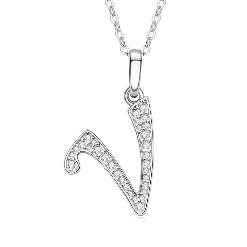 Colgante en Forma de V Plateado en Rodio con Letra de Cristal, Unisex, para Uso Diario, Estilo Clásico