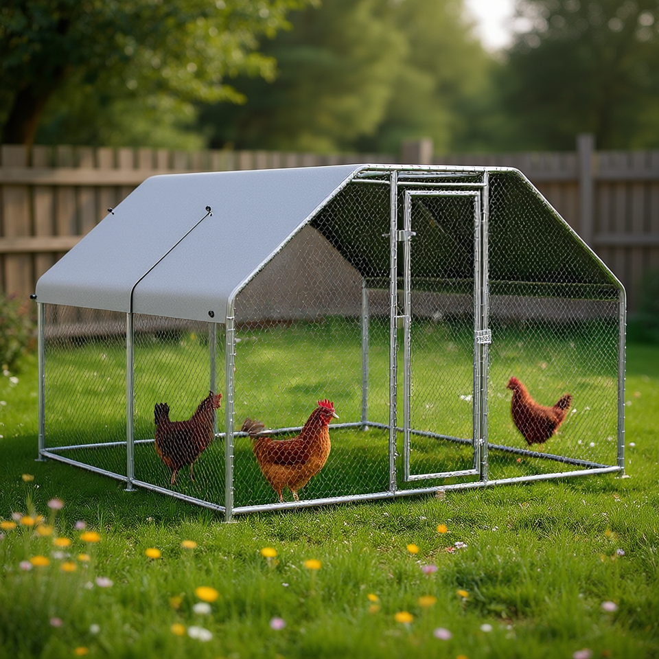 Gallinero Metálico Plateado con Puerta con Cerradura y Cubierta para 12 Jaulas, Jaula para Mascotas de Jardín