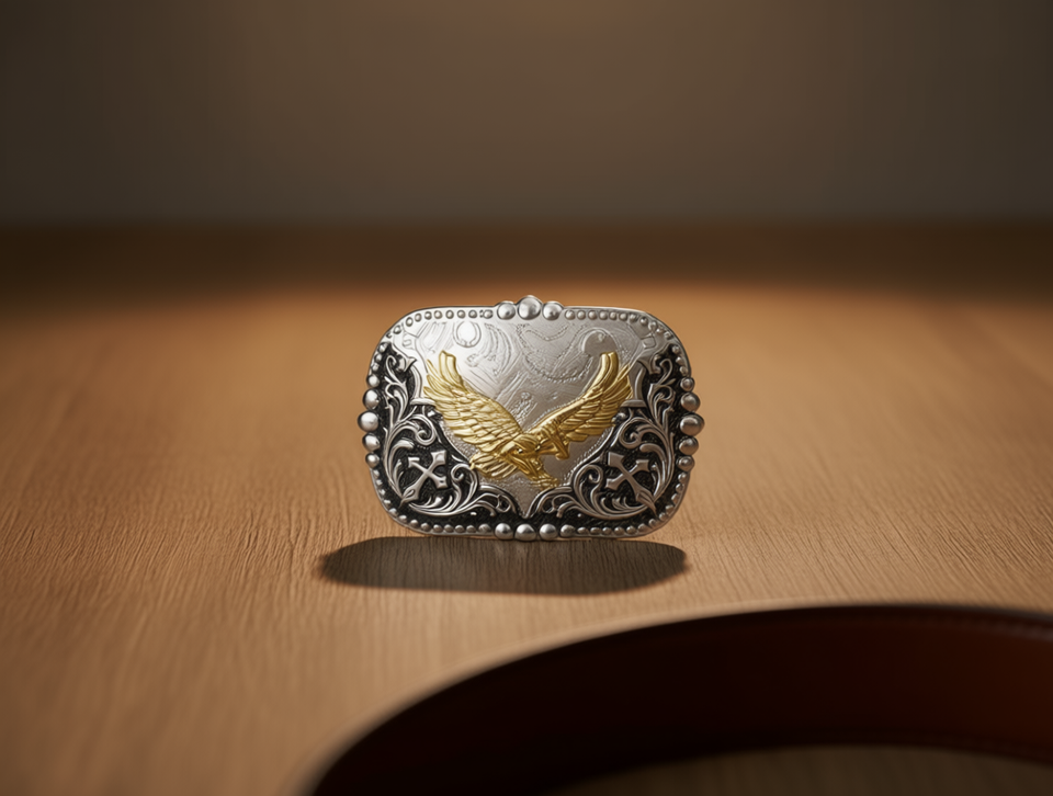 Hebilla de Cinturón Plateada con Detalles en Oro, Estilo Redondo de 5.0cm