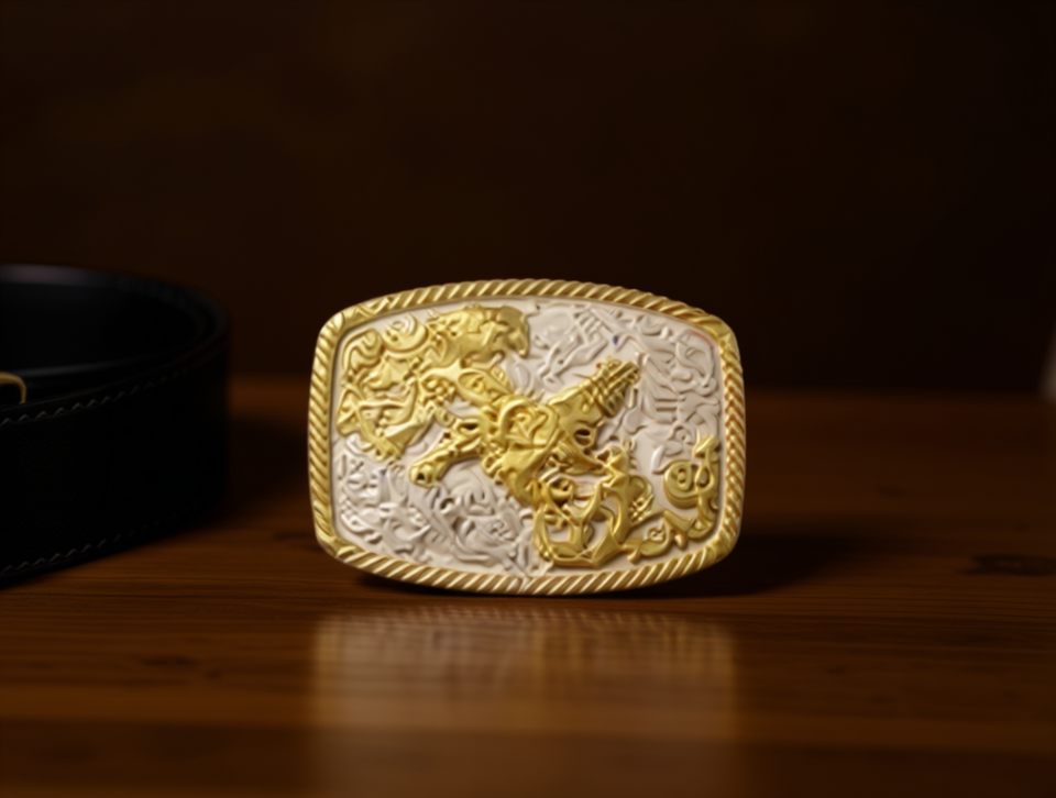 Hebilla de cinturón plateada con detalles en oro, grande, de 5.0 cm, redonda y cuadrada.