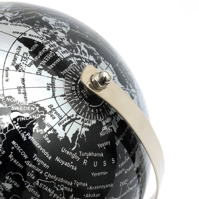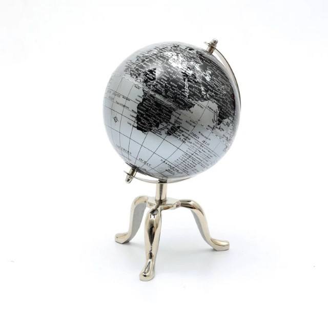 Art Deco diseño plata Metal mundo globo educativo escritorio decorativo Oficina acento pieza metálica geografía Decoración