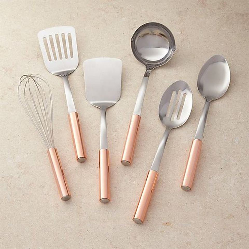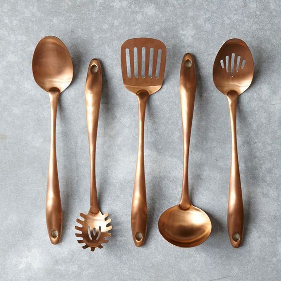 Juego de utensilios de cocina con mango redondo, oro rosa, plateado, juego de cuchara para servir