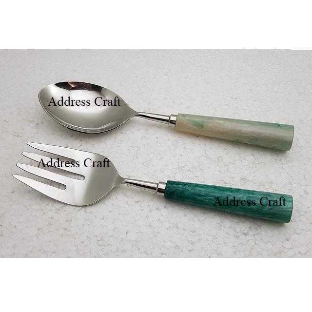 Juego de cubiertos, cuchara, tenedor con mango de resina, vajilla de acero inoxidable, servidor de alimentos, tocador de ensalada, precio, herramientas para ensalada