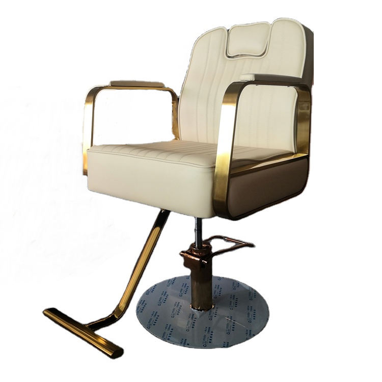 Silla de Barbero Siman Hot VIP Premium Gold, Base Redonda de Metal Gris, Liquidación Masculina con Reposapiés de Acero Inoxidable para Salón de Belleza