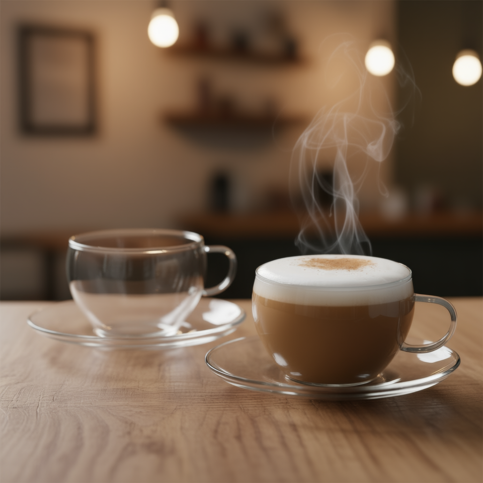 Juego de 2 tazas de té Simax Eva con platillos, taza de té de vidrio transparente y platillo para té o café
