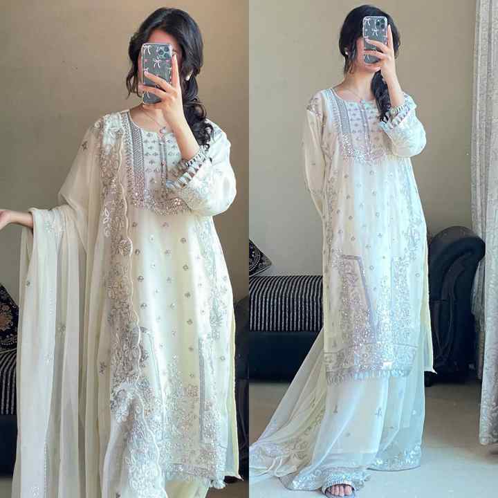 Conjunto de traje Sharara de seda Simmer, ropa de fiesta India paquistaní lista para usar, ropa de boda tradicional cosida Salwar Kameez Dupatta