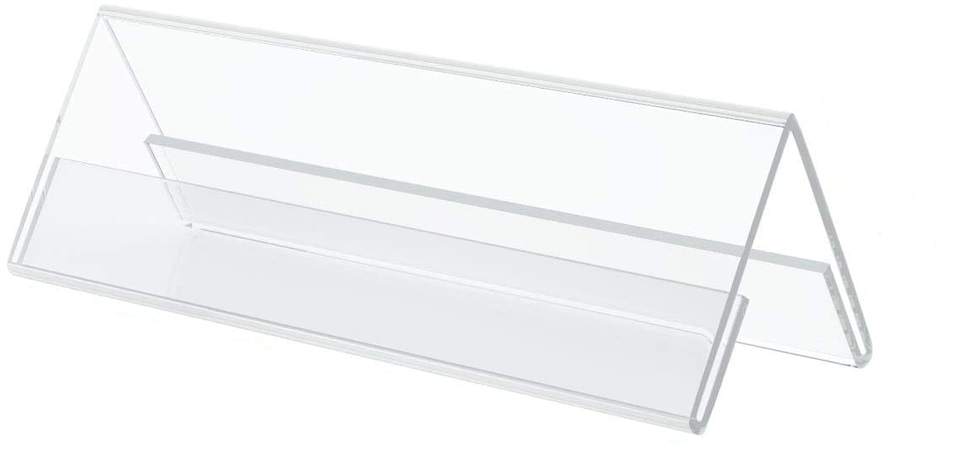Placa de nombre acrílica de 2 caras simple, pantalla de escritorio en forma de V para eventos de exposiciones de conferencias de negocios