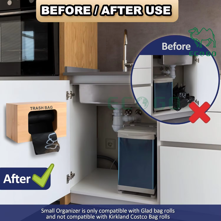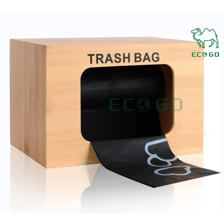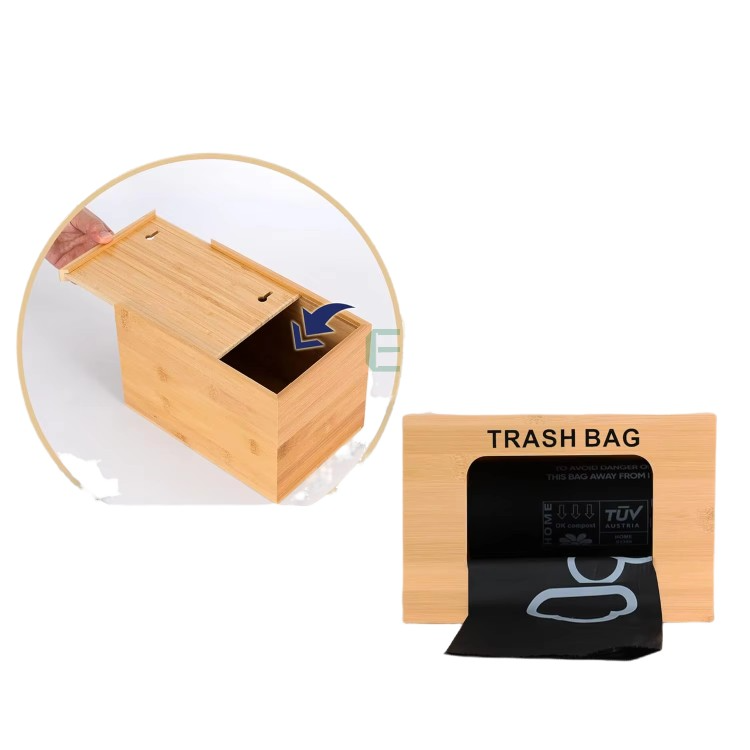 Dispensador de bolsas de basura hecho a mano de bambú simple, organizador de bolsas de basura de tamaño estándar, caja de bolsas de basura
