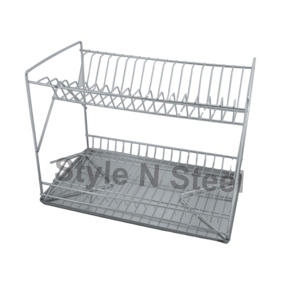 Nuevo Diseño de Escurridor de Platos de Cocina Cromado de 2 Niveles, Bandeja Simple para Cubiertos, Tazas y Utensilios