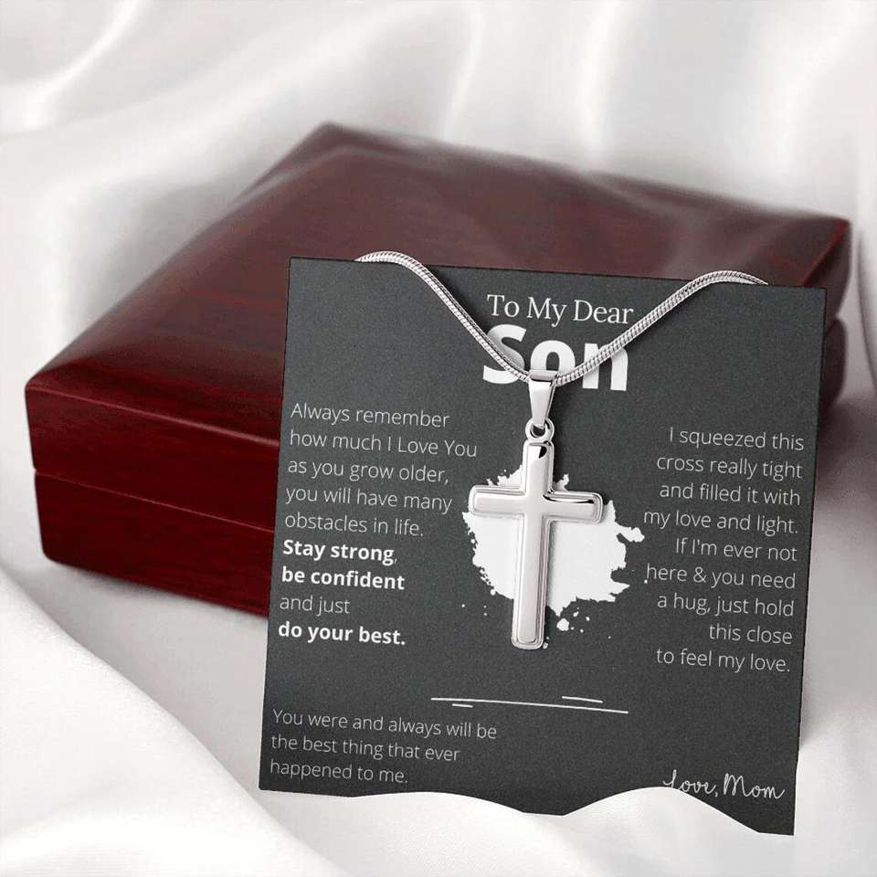 Collar con colgante de Cruz simple con caja de regalo y tarjeta de mensaje para mi hijo