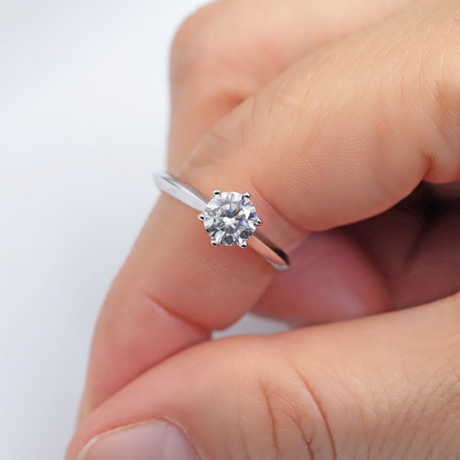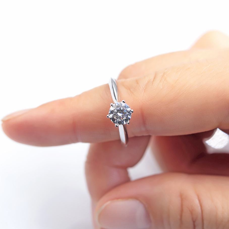 Nombre:Anillo de boda redondo de 6,5 mm con 6 puntas de oro blanco de 14 quilates y moissanita de 1 quilate