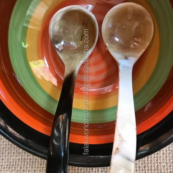 Cuchara de cuerno de búfalo de diseño simple Mini mango Color de cuerno natural Pieza de calidad superior Cuchara de especias de búfalo de Falak World Export