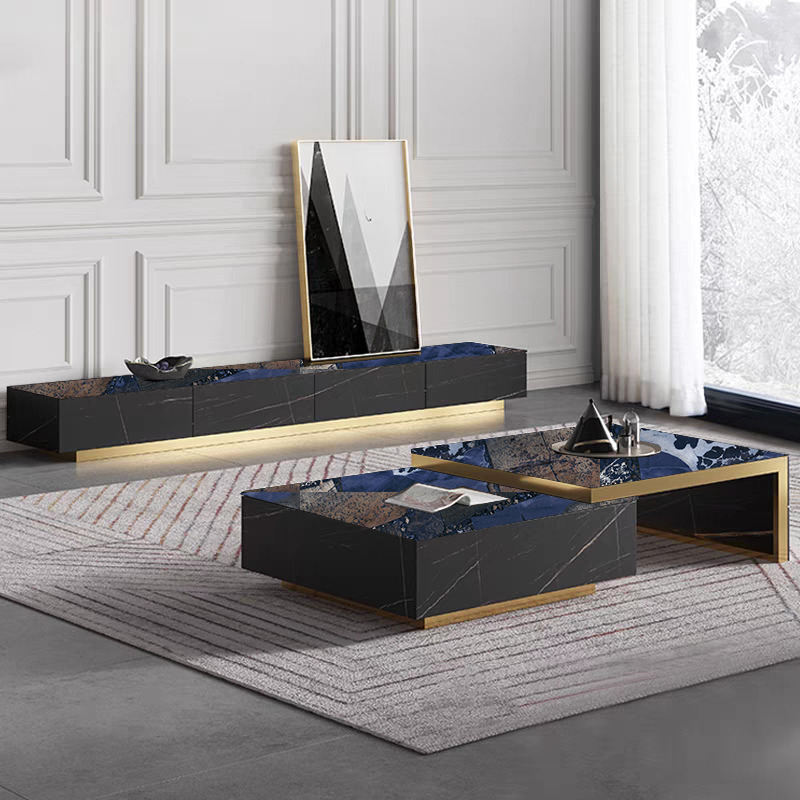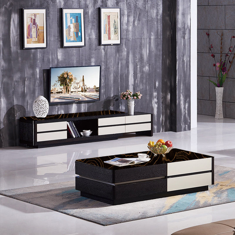 Mesa de Centro de Melamina MDF de Diseño Simple, Color Negro, Mesa de Té para Sala de Estar