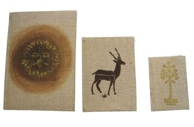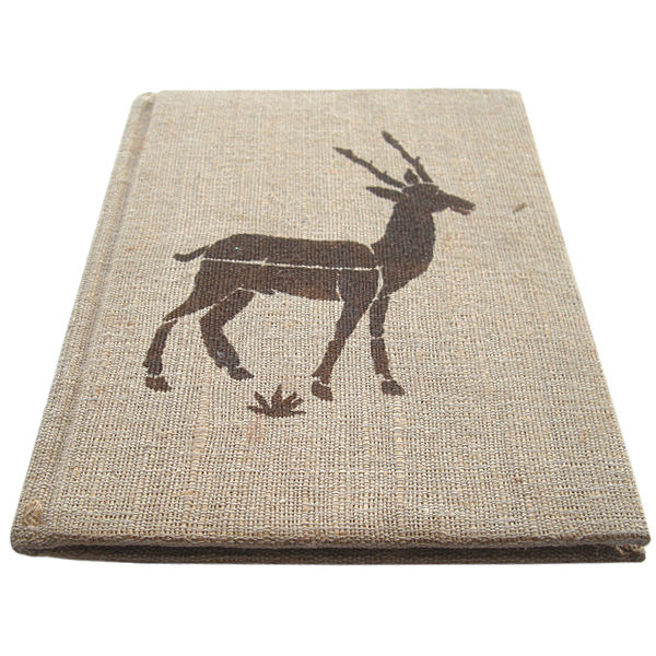 Cuaderno de Diseño Simple con Tapa Dura, Papel Hecho a Mano con Estampado en Bloque, Textil de Yute, Pétalos de Flores y Hierba