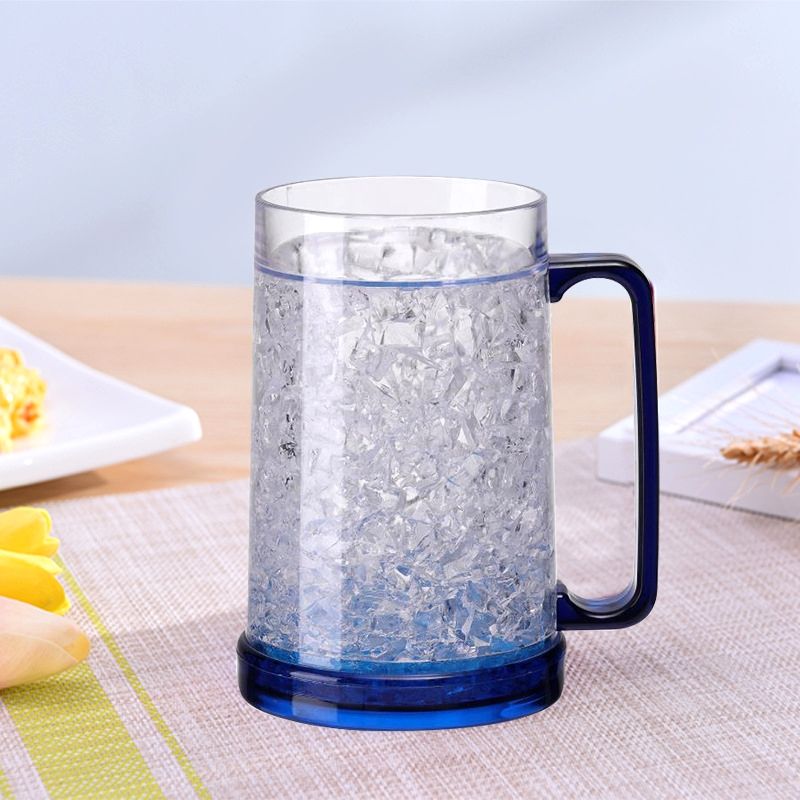 Taza de plástico con mango de Gel de doble capa de diseño Simple, regalo promocional publicitario para cerveza, hielo, refrigeración