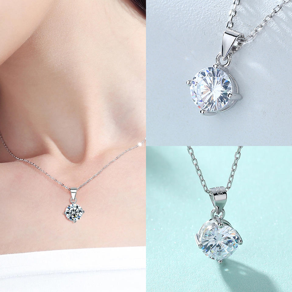Diseño Simple S925 Plata Cuatro puntas Ajuste Solitario Anillo Pendientes Collar Conjunto de joyas