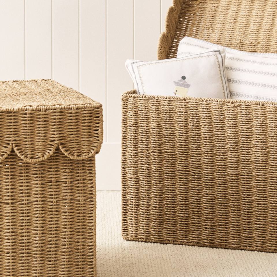 Cesta de almacenamiento de algas marinas de diseño Simple con tapa Cesta de bebé de algas marinas con tapa festoneada para habitación de niños