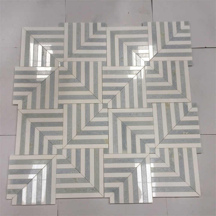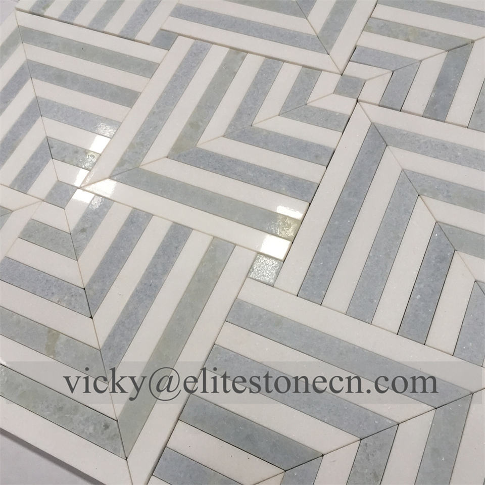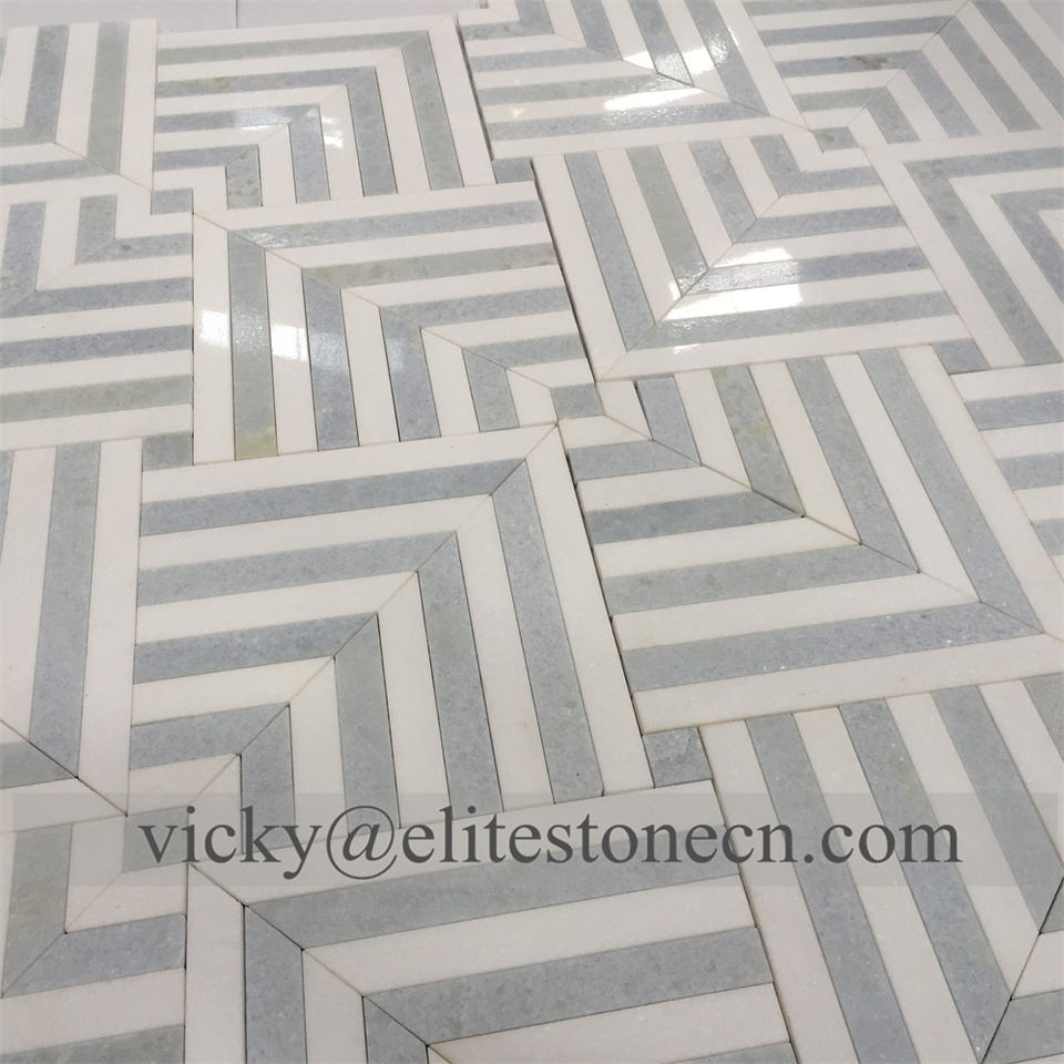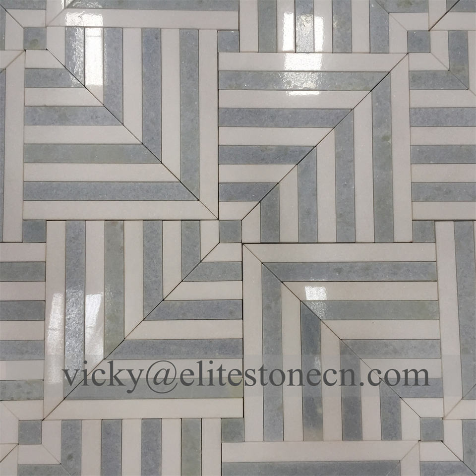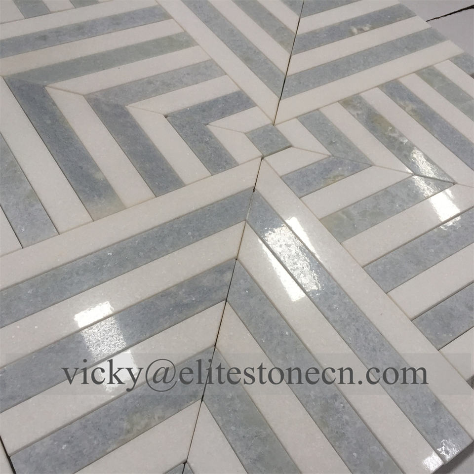Mosaico de Mármol Blanco de Thassos con Diseño Simple y Mezcla de Mármol Azul Argentino