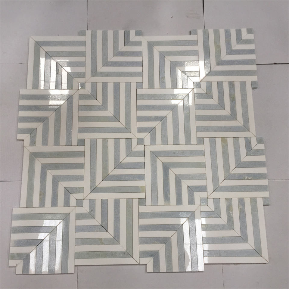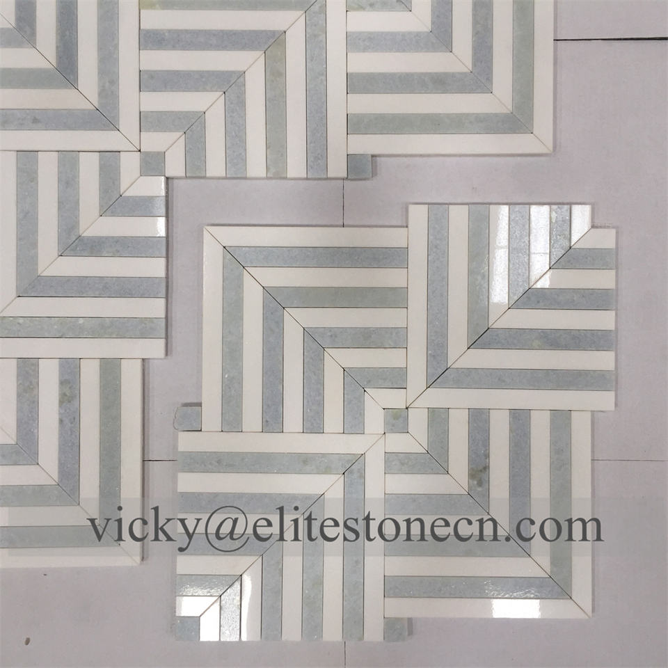 Mosaico de Mármol Blanco Thassos con Mármol Azul Argentina