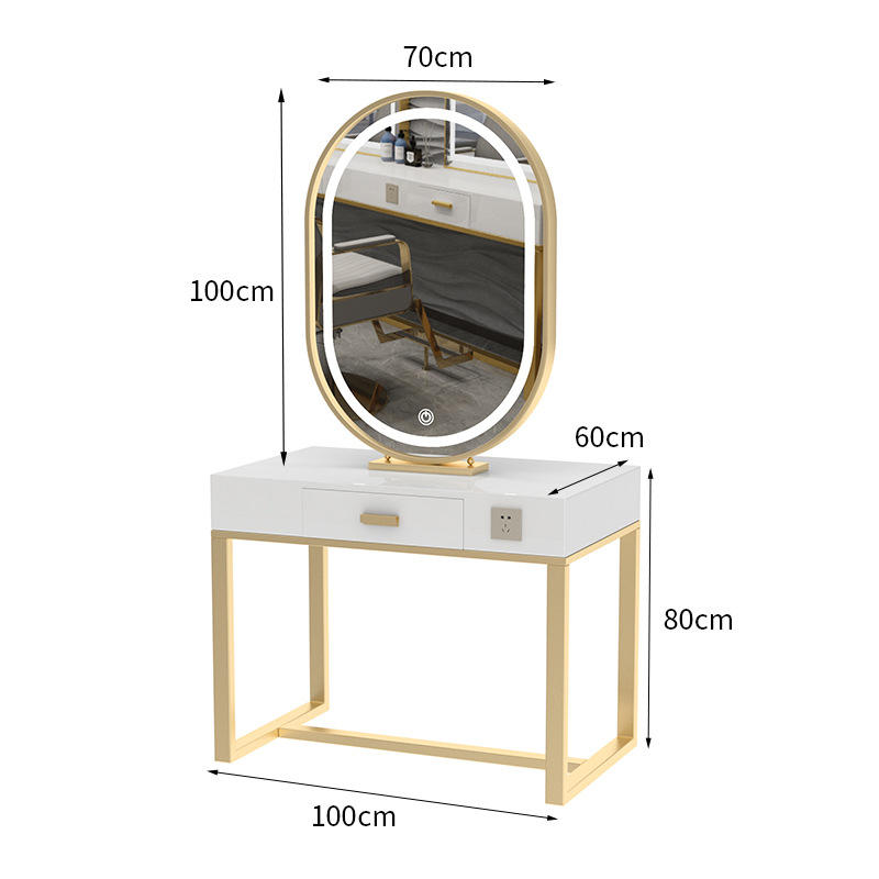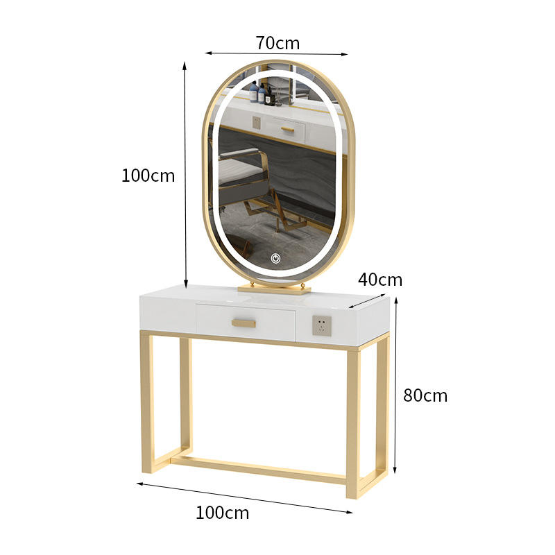 Mesa de tocador de diseño simple con luz Led, espejo de maquillaje, espejo ovalado, mesa Rectangular, estación de espejo para peluquería