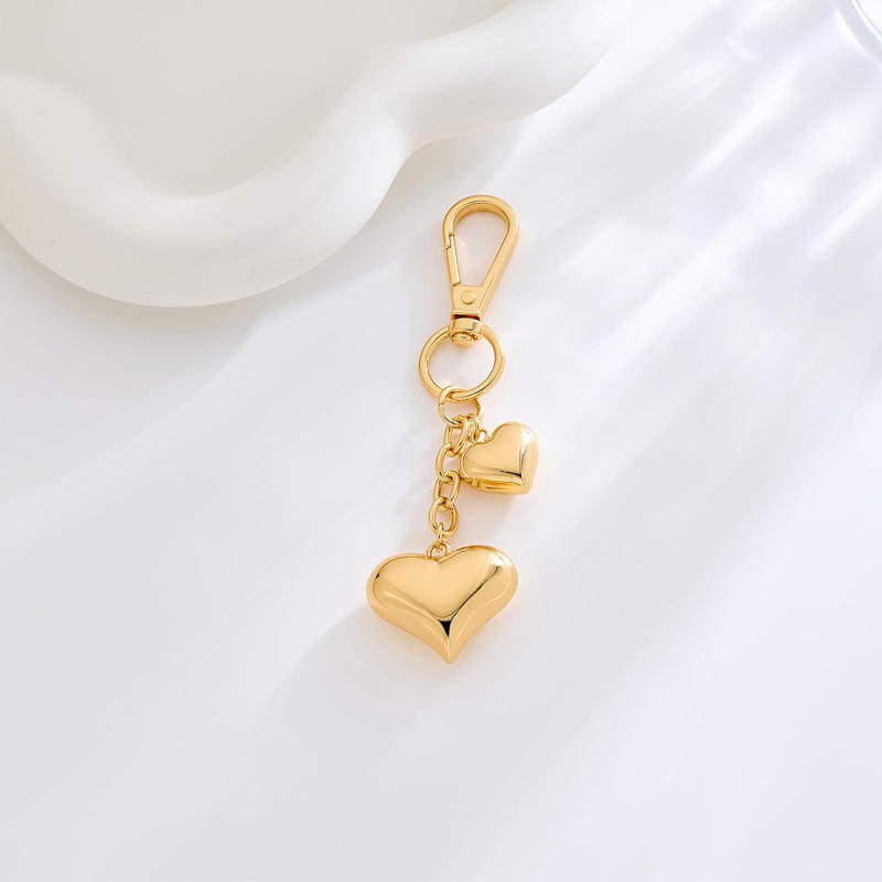 Llavero de Diseño Sencillo con Forma de Corazón y Cuentas, Cadena Metálica, Accesorios Colgantes, Dorado y Plateado