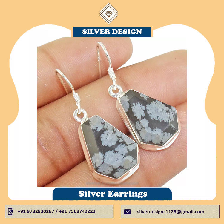 Nombre del producto:925 plata esterlina natural copo de nieve obsidiana piedras preciosas Pendientes