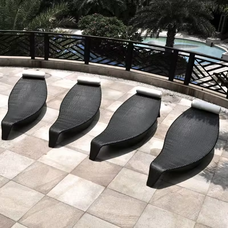 Tumbonas de Playa de Ratán PE, Estilo Simple y Moderno, Impermeables, para Hotel, Piscina y Playa