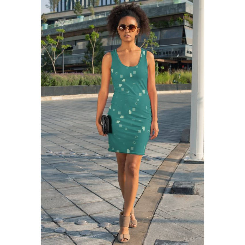 Vestido con Estampado Geométrico Simple de 3 Gráficos, Sublimado y Cosido