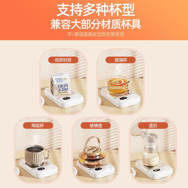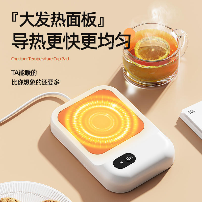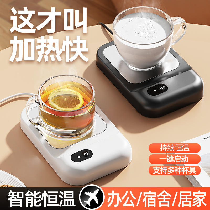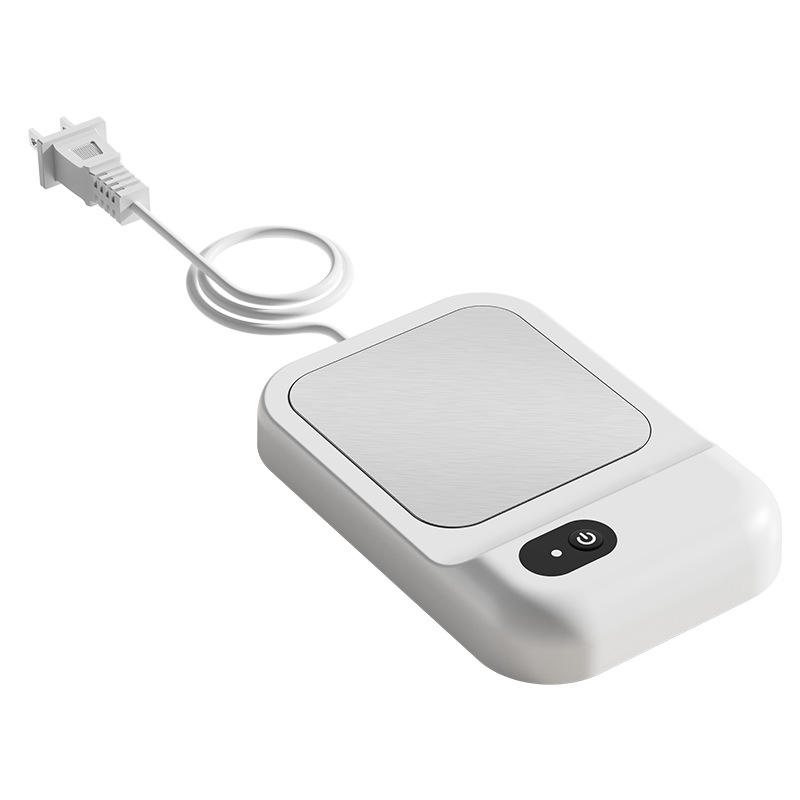 Posavasos calefactor simple, rectangular, de plástico, con enchufe, diseño mecánico minimalista, para calentar café y leche en casa.