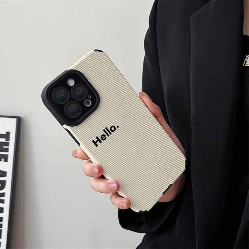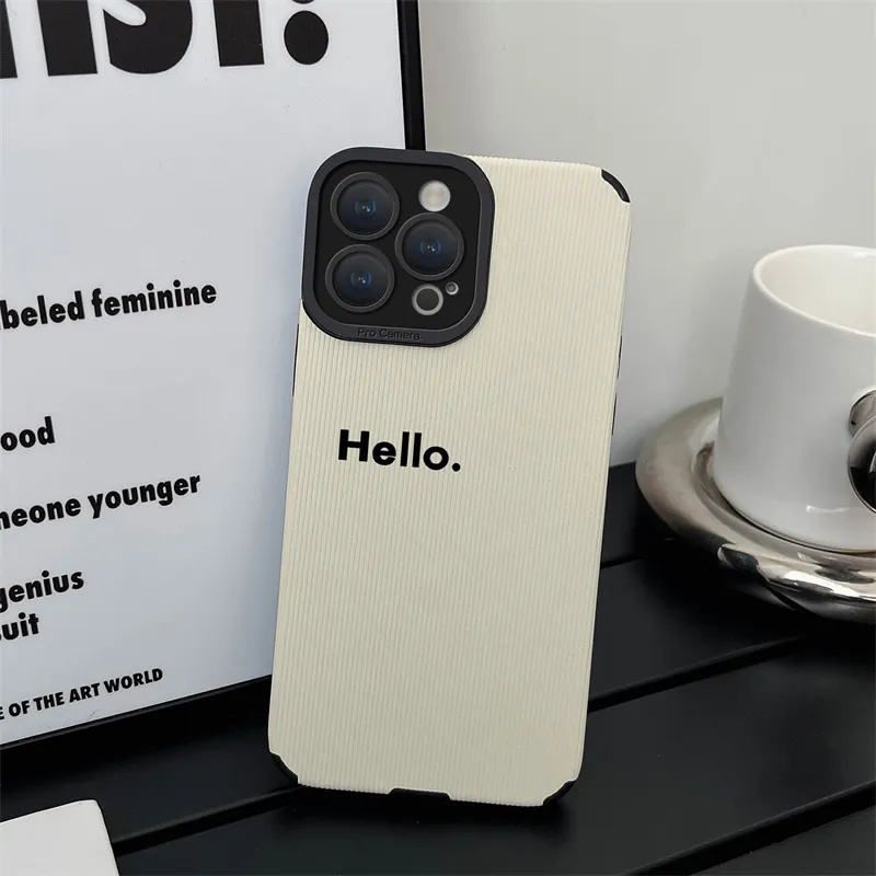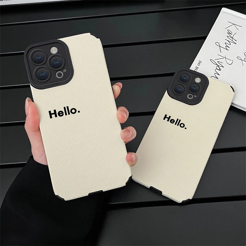 Funda de teléfono de cuero suave con letras Hello para IPhone 16 14 12 13 11 Pro MAX XR XS 7 8 Plus SE, funda de silicona blanca a prueba de golpes